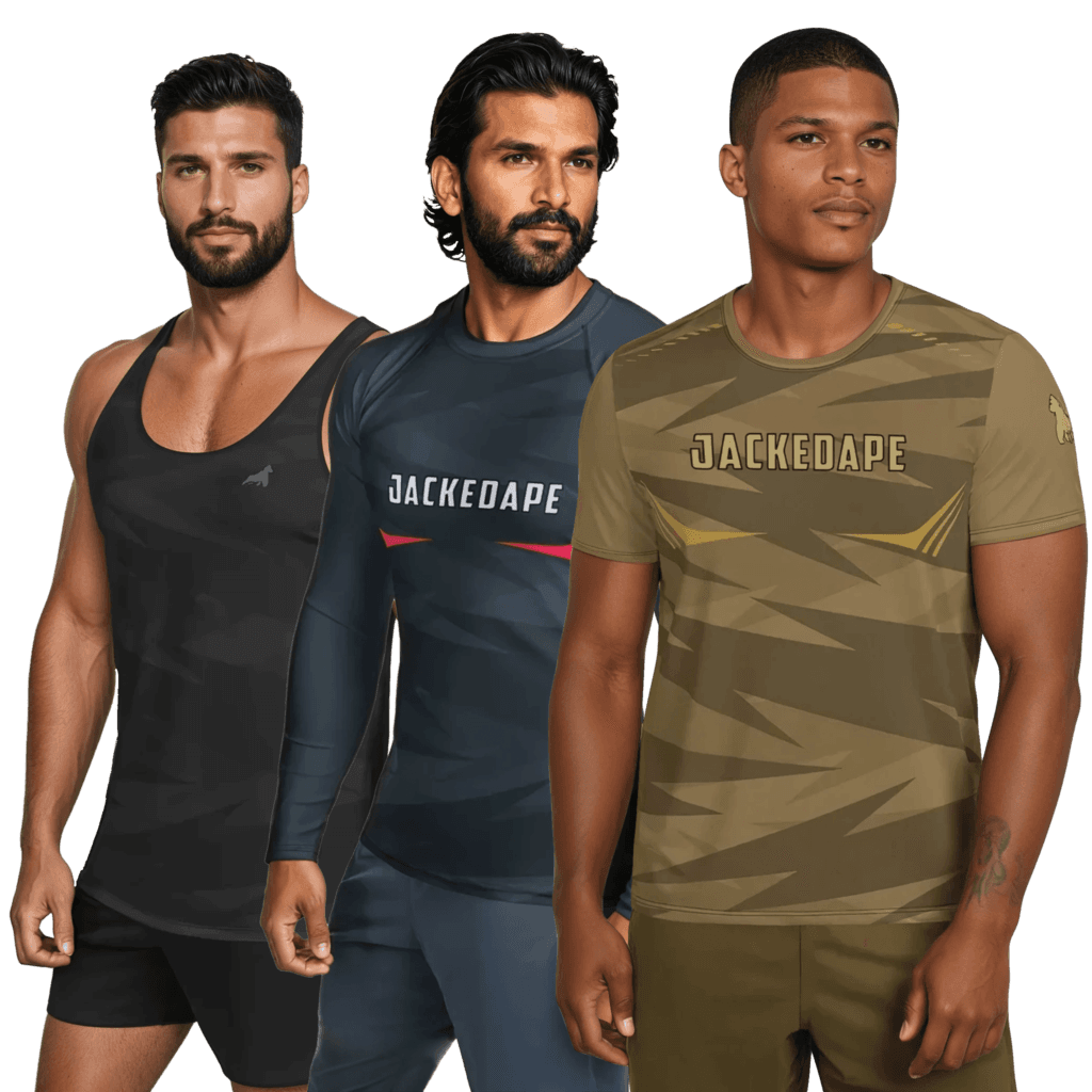 Präzisionsgefertigte Gym-Wear trifft auf Streetwear-Style mit passenden T-Shirts, Tanks, Trikots und Shorts. Trainiere hart, bewege dich mutig. Trainiere wie eine Legende.